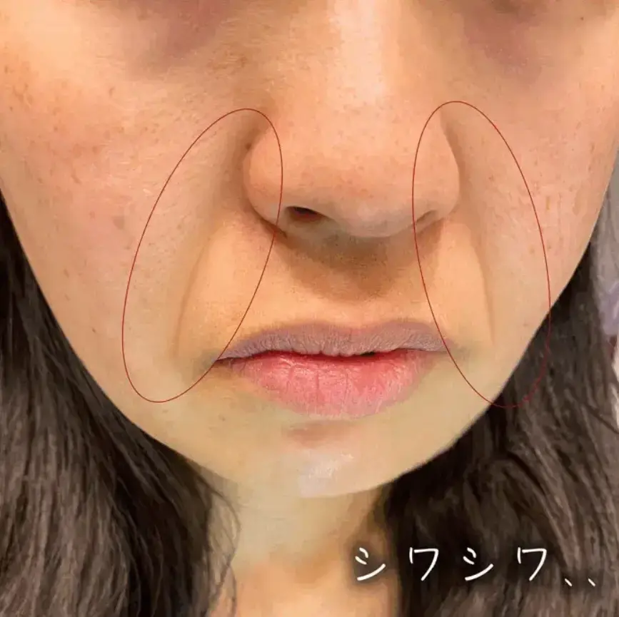 目元のシワなども